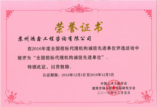 • 全國招標(biāo)代理機(jī)構(gòu)誠信先進(jìn)單位